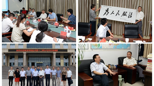 9月5日,王思怀来到新疆生产建设兵团十二师头屯河农场,与我校校友、兵团政策研究室副主任王世荣,近年来应聘至兵团工作的我校毕业生代表王齐齐等人进行了座谈,向兵团人力资源和社会保障局副局长杨忠、人社局人力资源市场处处长邢万忠,十二师人社局、人才中心及头屯河农场相关负责人回访我校毕业生工作情况。王世荣在座谈中介绍了兵团的性质、职责、体制、作用以及“双五千”人才引进计划,十二师人社局、人才中心及头屯河农场相关负责人对我校毕业生在兵团的工作表现给予肯定,并希望能与我校加强合作,共建实习基地,吸引更多优秀毕业生落户兵团支援新疆建设。王思怀代表学校向兵团赠送了“为人民服务”书法作品,以“天道酬勤”鼓励我校毕业生勤奋工作,为兵团事业多作贡献。