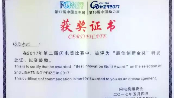 “闪电奖-最佳创新金奖”旨在鼓励推动行业创新进步的企业和个人,以颠覆传统的思维和战略眼光,帮助行业内部实现产品创新,技术创新,模式创新和营销创新,全面提升行业发展水平与竞争力,真正助力发电行业实现高效与可持续的发展。