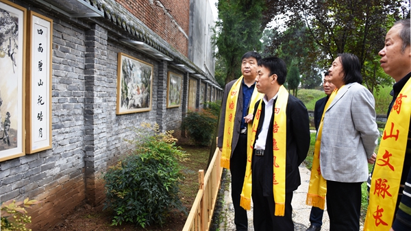 9月29日上午,我校优秀校友、书画家王家民先生四皓系列国画作品入跓商山四皓园揭幕仪式在丹凤县商山四皓碑林园举行。校党委副书记彭虎军应邀出席揭幕仪式,并参观了书画展。