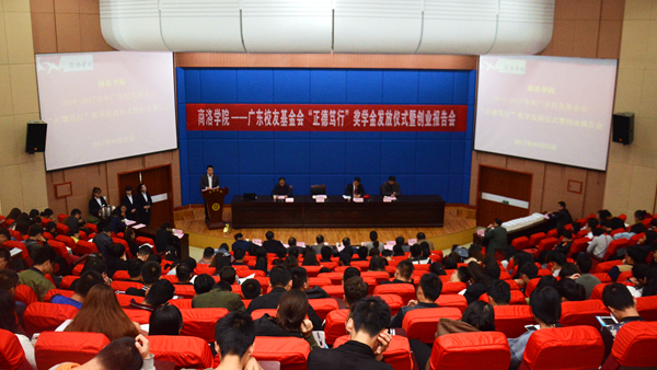 10月31日,我校举行广东校友基金会首届“正德笃行”奖学金发放仪式暨创业报告会,校党委副书记彭虎军,我校95届校友、广东校友会会长、广东绿谷净化设备有限公司董事长李玉望出席大会,学生处、校友总会办公室、各学院党总支负责人,学工办主任、全体辅导员、学生代表共400余人参加会议,大会由学生处处长石启英主持。