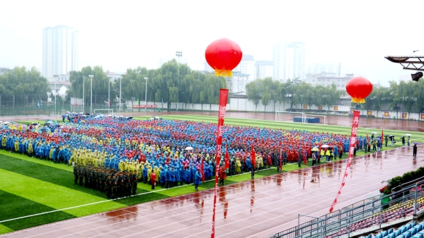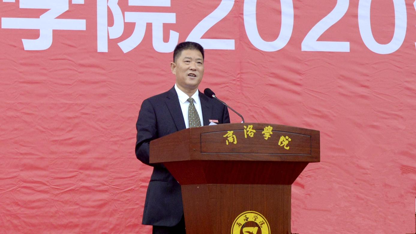 金秋九月,秦岭苍莽,丹水荡漾。9月28日上午,我校2020级学生开学典礼暨军训动员大会在学校体育场隆重举行。校党委书记龙治刚、校长范新会、党委副书记刘勇,党委副书记、纪委书记、监察专员曹渊、副校长刘宝盈、副校长王新军,商洛军分区动员处处长、商洛市人民政府征兵办公室副主任周武强上校,武警商洛支队参谋长、2020级新生军训团团长耿小民中校,化学92届校友、北京校友分会会长、北京龙门育才学校校长马良竹出席大会。二级学院(部)党政主要负责人及有关职能部门主要负责人,2020级全体新生参加大会。大会由刘勇主持。