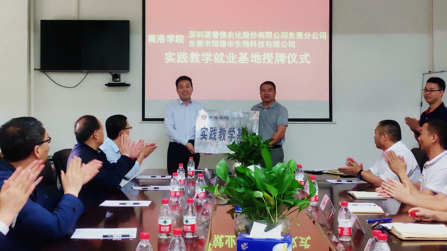 深圳诺普信农化股份有限公司东莞分公司、东莞市瑞德丰生物科技有限公司与我校已建立多年合作关系,今年生物学院、化材学院有3个专业、25名毕业班学生在此实习。龙治刚一行与两家企业代表及我校实习学生代表进行了座谈交流,彭虎军代表学校为两家合作企业教学实践基地授牌。龙治刚在座谈中指出,诺普信集团作为服务三农的农业龙头企业,与我校有着良好的合作基础。希望校企双方进一步健全合作机制,在教学实习、就业实习的基础上,探索打造“订单培养”模式、实施“人才定制班”、建立“产业学院”,推进产学研用一体化纵深发展,促进更多学生在南粤大地上实现自己的人生理想。深圳诺普信农化股份有限公司东莞分公司总经理田先平表示,将全力支持学校发展,为学生实习就业提供良好平台。