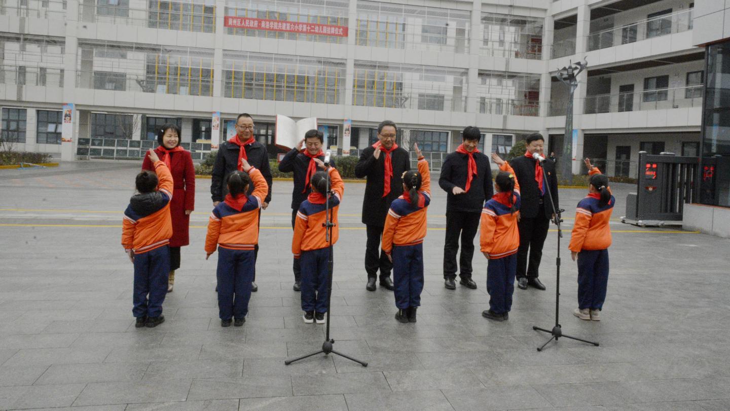 12月2日,商洛学院附属小学、附属幼儿园揭牌仪式在商州区第六小学举行。校党委书记龙治刚,副校长刘宝盈,商州区人民政府副区长赵新选,商州区科教体局党委书记、局长张雪平出席仪式并共同揭牌,商州区第六小学、第十二幼儿园正式成为商洛学院附属小学、附属幼儿园。