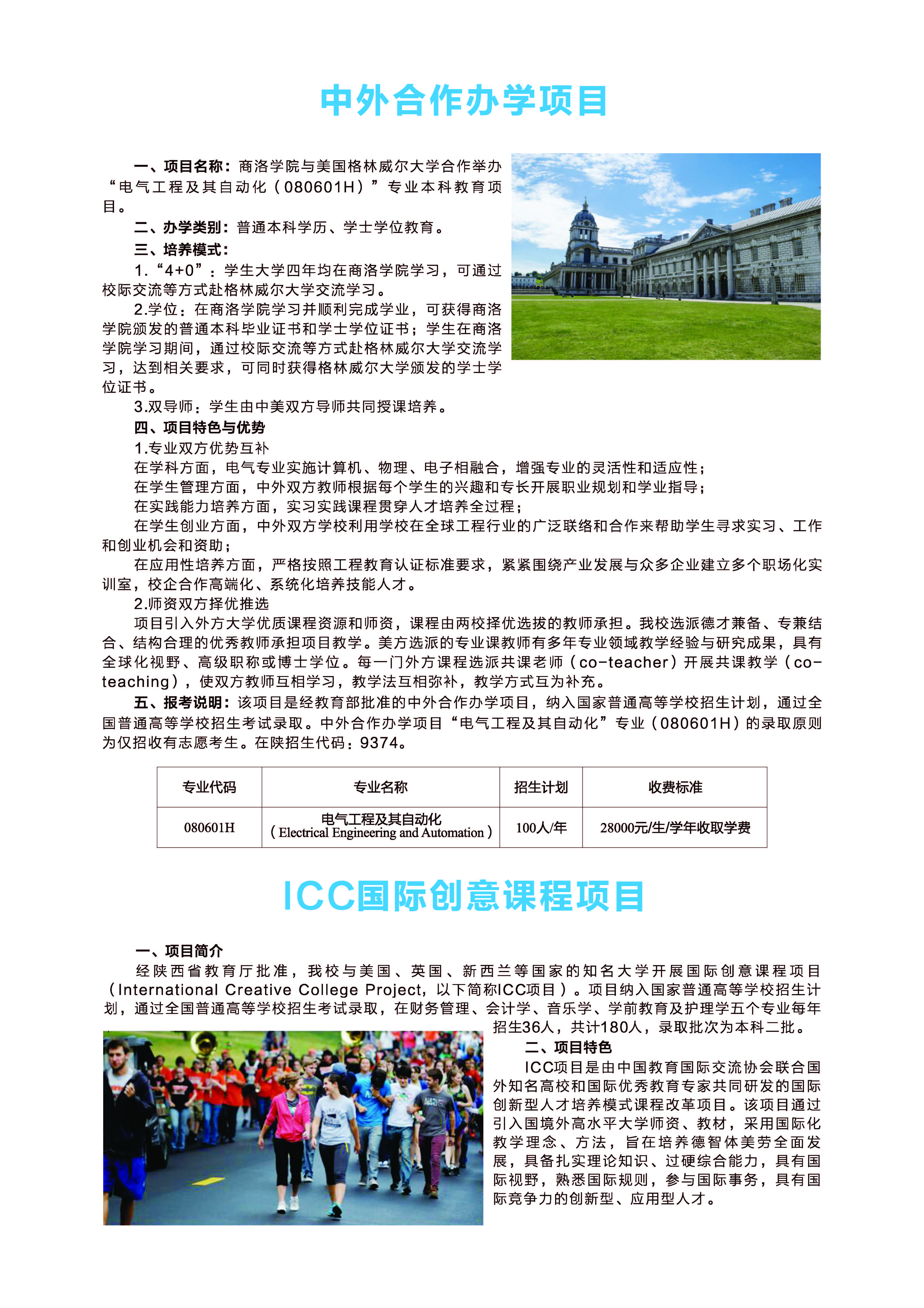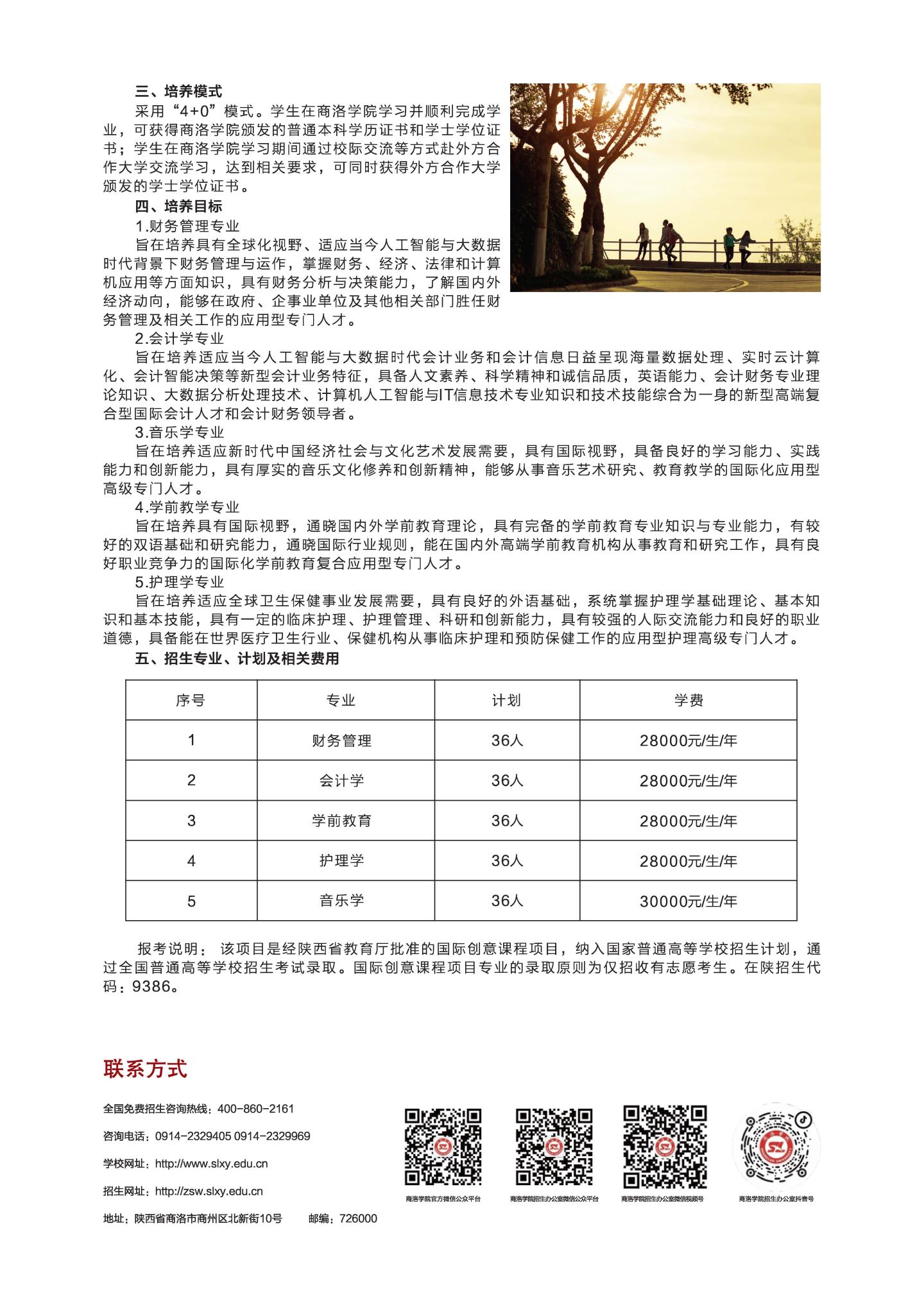 2022年商洛学院中外合作办学和国际创意课程项目招生简章