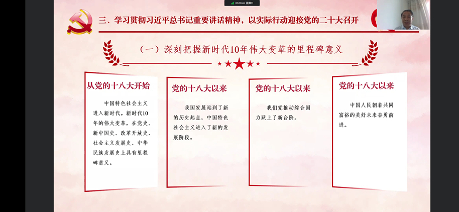 张志昌强调,党的二十大即将于10月份召开,这是在进入全面建设社会主义现代化国家新征程的关键时刻召开的一次十分重要的大会,将科学谋划未来5年乃至更长时期党和国家事业发展的目标任务和大政方针,事关党和国家事业继往开来,事关中国特色社会主义前途命运,事关中华民族伟大复兴。作为青年学生,一是要坚定理想信念,主动“扣好人生的第一粒扣子”,自觉做社会主义核心价值观的坚定信仰者、积极传播者、模范践行者,坚决听党指挥跟党走,把对党忠诚、对人民的热爱始终牢记在心中、落实到行动中。二是要强化理论武装,及时跟进学习,始终在政治立场、政治方向、政治原则、政治道路上同以习近平同志为核心的党中央保持高度一致,坚定不移沿着习近平总书记指引的道路奋勇前进。三是要增强实践本领,坚持学以致用,积极参加创新创业实践,拓宽学习领域、优化知识结构,培养创新意识、提高创新能力。