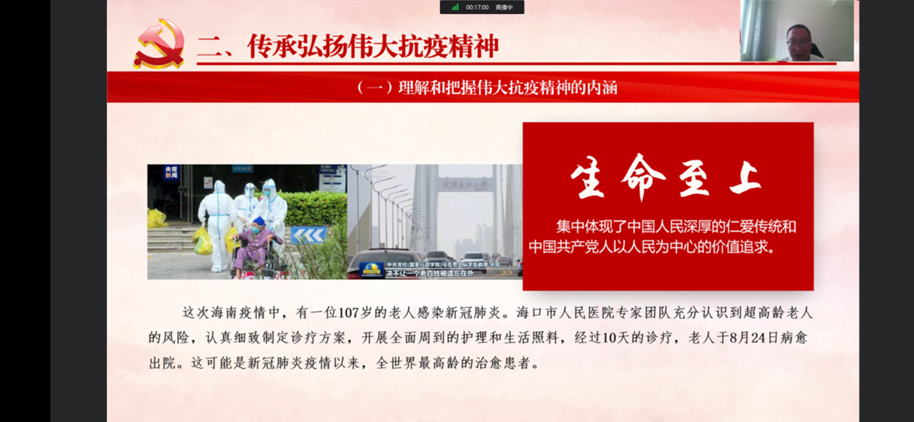 校领导的授课主题鲜明、内容丰富、深入浅出、各具特色,既有理论高度,又有思想深度。广大学生纷纷通过在线平台为校领导点赞,并在留言中踊跃抒发自己传承伟大抗疫精神、勇担民族复兴大任的信心和决心。