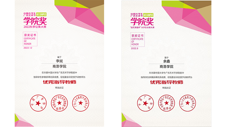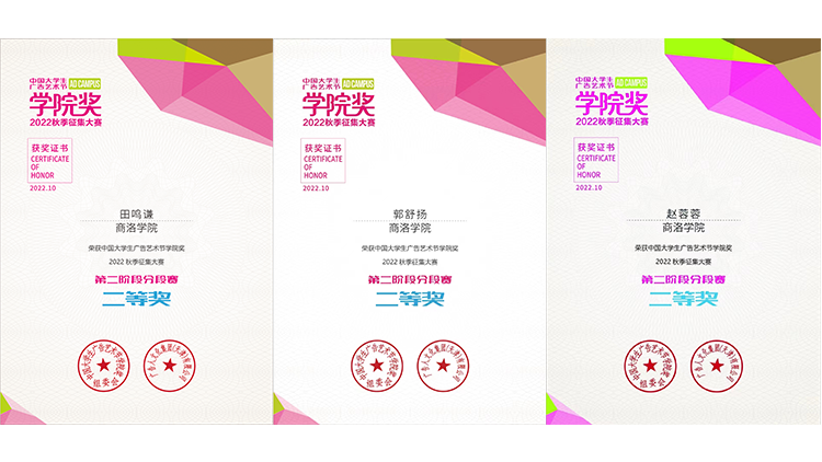 近日,由中国广告协会主办、广告人文化集团协办、创意星球全程执行的中国大学生广告艺术节学院奖2022征集大赛圆满落幕。我校艺术学院、人文学院、经管学院1000多名师生参与了此项赛事。在第二阶段分段赛中,艺术学院李斌、余鑫老师荣获“优秀指导教师”称号,美术学专业2104班学生赵蓉蓉等3名学生获二等奖,美术学专业1901班柴进宝等9名学生获三等奖,24名学子获优秀奖,50名学子获入围奖。