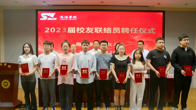 国内合作与校友工作处处长刘顺超宣读了《商洛学院关于聘任马仁杰等104名同学为2023届校友联络员的通知》。参会领导为校友联络员代表颁发了聘书。