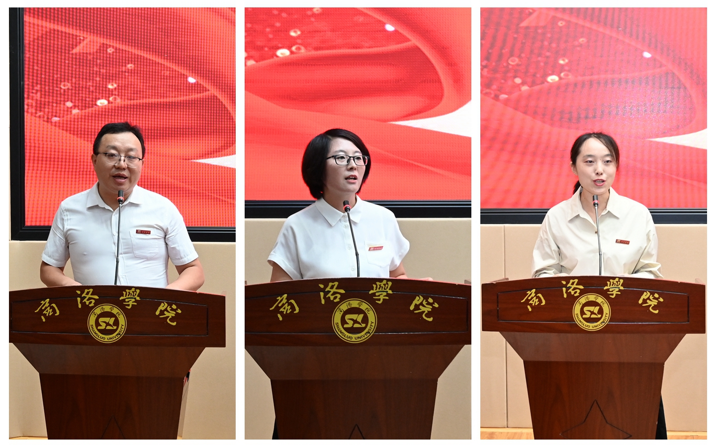 2023年先进集体单位代表袁训锋、科研工作突出业绩代表乔成芳、教学工作突出业绩代表房琳分别作了发言。他们一致表示,今后将始终以习近平新时代中国特色社会主义思想为指导,坚定“躬耕教坛,强国有我”的职业信念,践行“四有”好老师标准,将扎实的知识功底、过硬的教学能力、勤勉的教学态度、科学的教学方法作为自身的基本素质,不断提升教育能力、科研能力、社会服务能力,为把商洛学院建设成为省内、国内一流应用型本科院校而努力奋斗。