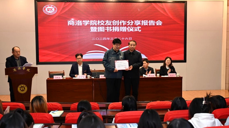 3月26日,我校82届中文系校友杨高智受邀为师生作创作分享报告,并向学校捐赠个人编撰的图书《商州存照》70册。副校长王新军出席捐赠仪式。国内合作与校友工作处、图书馆负责人,人文学院党政负责人,图书馆、国内合作与校友工作处全体工作人员和师生代表100余人参加仪式。仪式由人文学院党委书记杜明生主持。