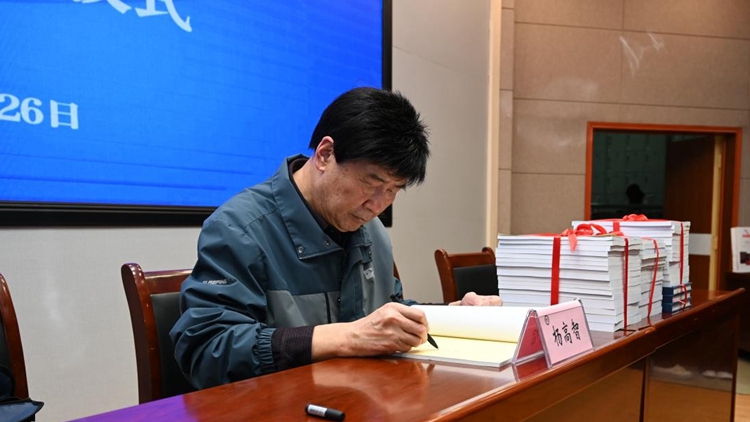 捐赠仪式上,王新军为杨高智颁发收藏证明,图书馆馆长张国春代表学校接受赠书。