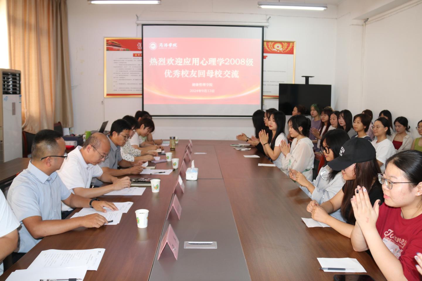 为进一步做好2025届毕业生就业工作,9月13日,健康管理学院邀请府谷县华阳九年制学校骨干教师石小洁和陕西盛润兴合工贸有限公司总经理黄明珠两位08级应用心理学专业优秀校友回校,参加“优秀校友面对面”就业指导座谈会,与毕业生一起分享求职创业经历及工作感悟,为毕业生就业提供指导和帮助。学院党委书记王攀、党委副书记杨宪华、心理系相关教师、辅导员及应用心理学2025届全体学生参加座谈会。