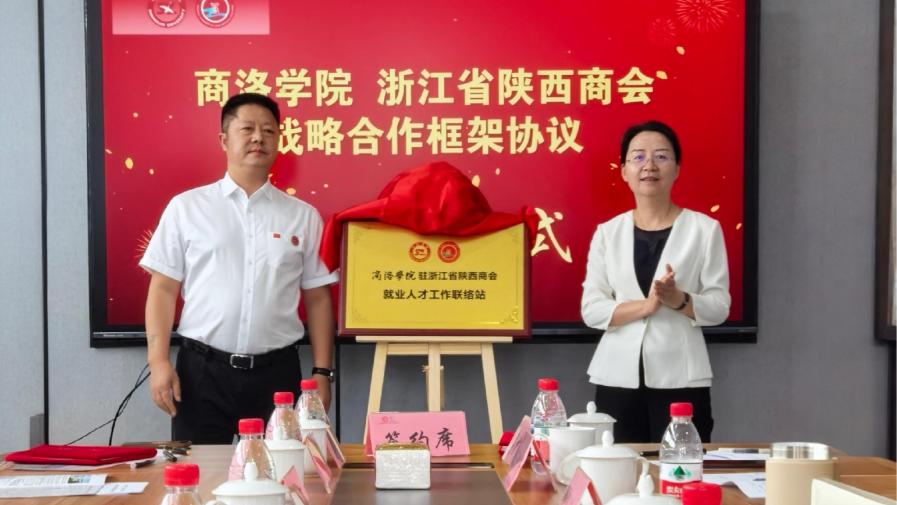 7月31日,商洛学院与浙江省陕西商会签订战略合作框架协议,成立商洛学院驻浙江省陕西商会就业人才工作联络站。校长权雅宁,浙江省陕西商会轮值会长、执行会长、杭州鸿游悦境文旅有限公司董事长谢红印出席签约仪式并为联络站揭牌。这是商洛学院以驻湖州就业人才工作联络处为纽带,充分发挥高校人才智力优势与商会企业资源优势,促进产教融合,推动校会合作、校企协同发展的一项标志性举措。