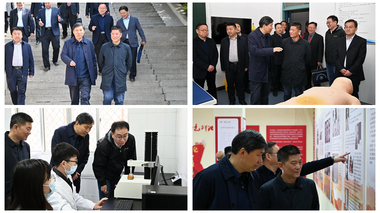 会前,李波一行在范新会等人陪同下参观了我校心理健康教育中心、健康学院教学研究实验室、红色文化资料馆。