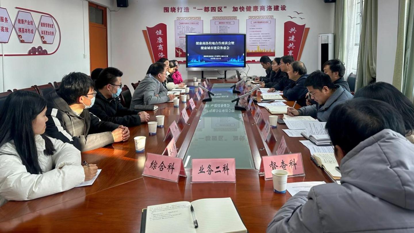 1月22日,健康管理学院与健康商洛建设领导小组办公室联合召开健康商洛校地合作座谈会暨健康城市建设务虚会,进一步对接2024年校地合作事宜。健康管理学院院长郭耀东,健康商洛建设领导小组办公室专职副主任杨建康出席会议。学院健康商洛研究实践团队成员,健康商洛建设领导小组办公室科级干部及相关科室主要负责人参加会议。