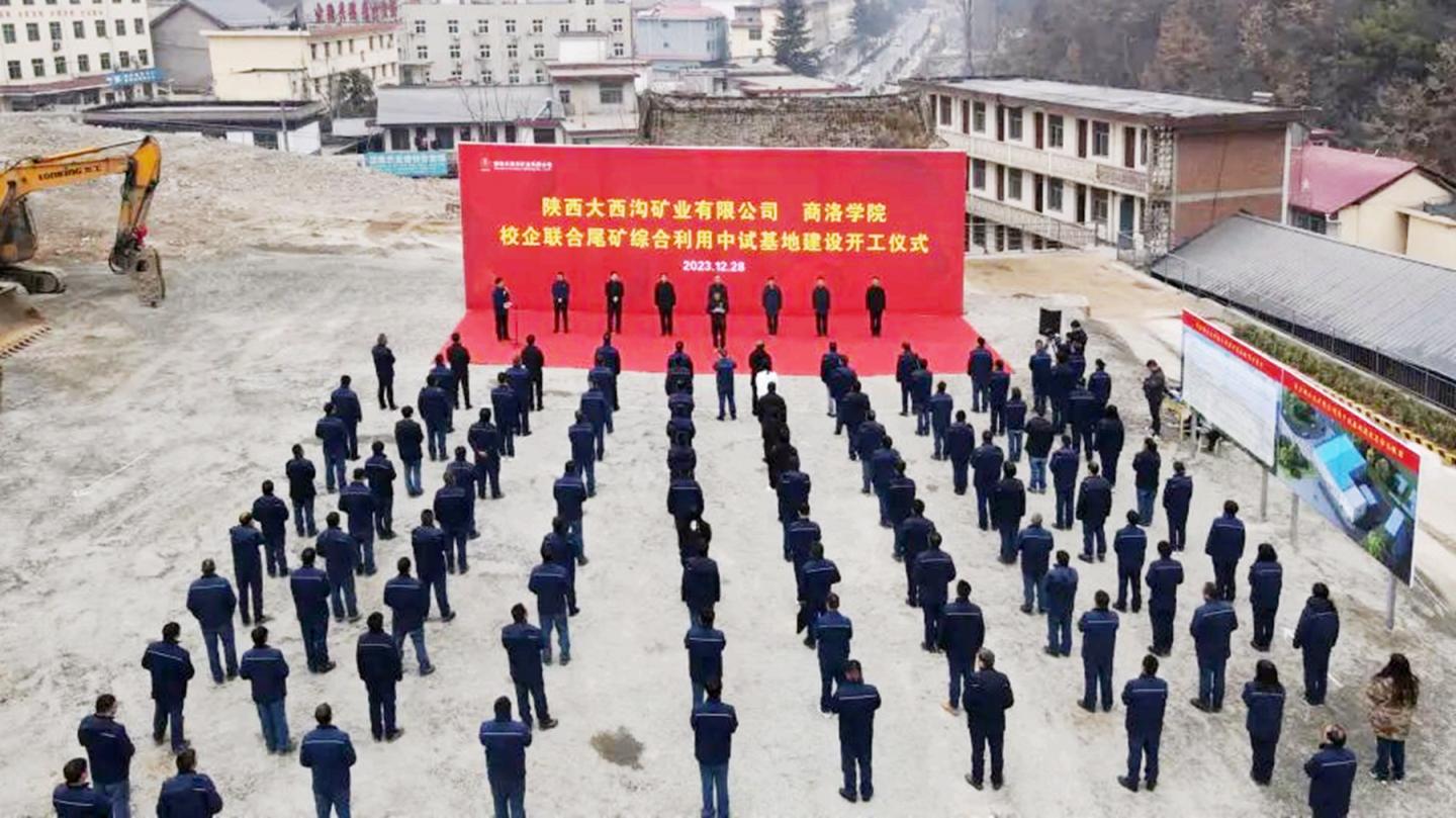 为推动尾矿资源综合利用领域共性关键技术问题、核心技术的研发与产业化,12月28日,我校与陕西大西沟矿业有限公司共建的校企联合尾矿综合利用中试基地项目开工仪式在大西沟矿业公司举行。校长范新会,副校长王新军,陕钢集团党委副书记、工会主席武军强,商洛市科学技术局副局长李传伟,商洛市工业和信息化局副局长陈德锋,柞水县人民政府副县长蒋维杰,大西沟矿业公司党委书记、董事长闫俊超出席开工仪式。我校陕西省尾矿资源综合利用重点实验室、化材学院相关负责人,项目设计及建设单位代表,大西沟矿业公司相关代表参加开工仪式。开工仪式由大西沟矿业公司总经理聂建仓主持。