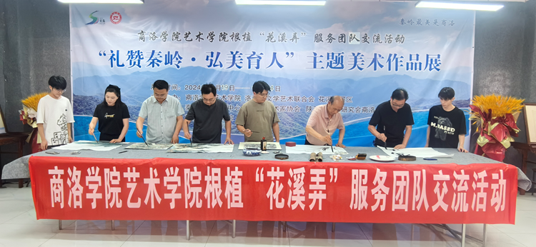 6月19日,艺术学院、洛南县文学艺术界联合会、商花溪弄景区共同策划主办,由秦岭画派研究中心、洛南县美术家协会、陕西山水画研究会商洛分会承办的根植花溪弄服务系列活动“礼赞秦岭·弘美育人”主题美术作品展在洛南县花溪美术馆开幕。展览共计展出作品70幅,其中教师示范作品9幅,学生创作作品13幅,《秦岭山水写生》课程实践成果作品48幅。