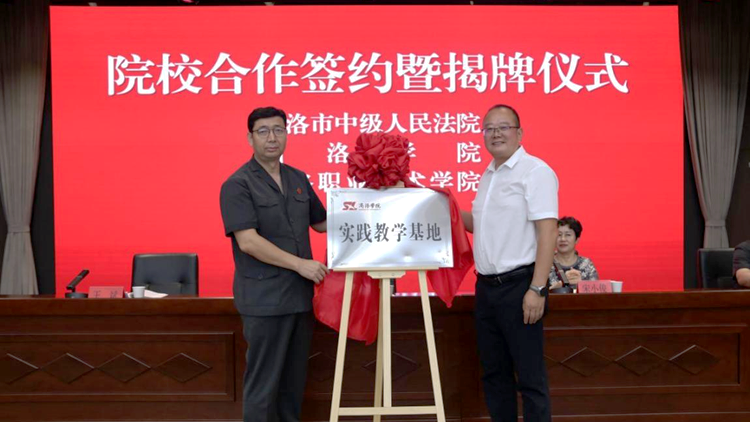 为进一步深化协同育人机制,落实新时代大学生法治思维培养的新要求,探索法治元素与实践元素有机融合的教学新路径,8月1日,我校与商洛市中级人民法院举行校院合作协议签订暨实践教学基地揭牌仪式。副校长郭瑾、商洛市中级人民法院副院长王斌出席活动并致辞。我校教务处、人文学院、经济管理学院相关负责人和商洛市中级人民法院相关部门共50余人参加活动。