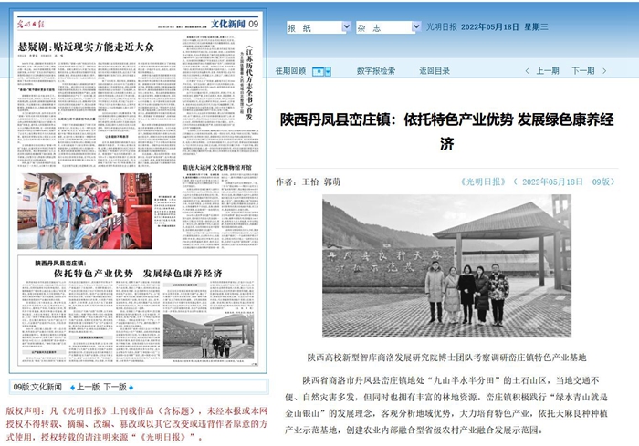 团队积极搭建陕西高校新型智库商洛发展研究院平台,立足商洛、陕南、大秦岭实际,围绕商洛高水平现代化建设目标,聚焦乡村振兴研究、秦岭生态保护及资源利用研究、生态产业发展研究,致力于破解制约商洛经济社会发展的瓶颈问题,整合汇聚优势资源,将科研成果与发展实践相结合,积极为政府决策建言献策,提升学校服务经济社会发展的能力,推动教育与区域经济社会融合发展,发挥高等教育溢出效应,使商洛发展研究院成为服务商洛乃至陕南绿色发展的决策咨询重要机构、培养决策咨询人才的重要基地。与商洛市发展和改革委员会、商洛市政府研究中心共建共同富裕研究中心,立足区域资源禀赋和经济社会发展实际,探索“大商洛、高质量、共富裕”的发展新路子,为实现共同富裕提供决策建议和理论咨询,贡献“智库智慧”和“院校力量”。